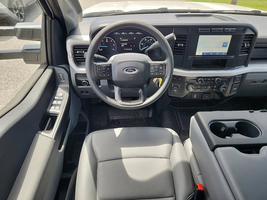 Check out all these great options on this vehicle: GVWR: 16,500 lb Payload Package, Low Deflection Package, Order Code 650A, Snow Plow Prep Package, XL Chrome Package (Bright Grille, Chrome Front Bumper, Halogen Fog Lamps, Power Sliding Rear Glass, Rear Window Defroster, and Remote Start), 120V/400W Outlet, 4-Wheel Disc Brakes, 4.88 Axle Ratio, 410 Amp Dual Alternators, 6 Speakers, ABS brakes, Air Conditioning, AM/FM radio, Brake assist, Compass, Delay-off headlights, Dual 68 AH/65 AGM Battery, Dual front impact airbags, Dual front side impact airbags, Dual rear wheels, Emergency communication system: SYNC 4 911 Assist, Exterior Backup Alarm (Pre-Installed), Front anti-roll bar, Front Center Armrest w/Storage, Front License Plate Bracket, Front reading lights, Fully automatic headlights, HD Vinyl 40/20/40 Split Bench Seat, Heated door mirrors, Illuminated entry, Limited Slip w/4.88 Axle Ratio, Outside temperature display, Overhead airbag, Overhead console, Panic alarm, Passenger cancellable airbag, Passenger vanity mirror, Platform Running Boards, Power door mirrors, Power steering, Power windows, Rear anti-roll bar, Remote keyless entry, Speed control, Split folding rear seat, Steering wheel mounted audio controls, SYNC 4 Communications & Entertainment System, Tachometer, Telescoping steering wheel, Tilt steering wheel, Traction control, Trip computer, Turn signal indicator mirrors, Variably intermittent wipers, and Wheels: 19.5" x 6" Argent Painted Steel.