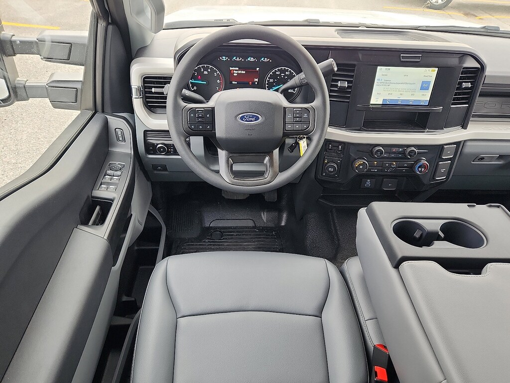 Check out all these great options on this vehicle: Ford Connectivity Package (1-Year Included), Internet access capable: 5G Modem - Ford Connectivity Package, Order Code 610A, Snow Plow Prep Package, XL Chrome Package (Bright Chrome Hub Covers & Center Ornaments, Chrome Front Bumper, Chrome Rear Step Bumper, and Halogen Fog Lamps), 17" Argent Painted Steel Wheels, 18" Argent Painted Steel Wheels, 4-Wheel Disc Brakes, 6 Speakers, ABS brakes, Air Conditioning, AM/FM radio, AM/FM Stereo w/MP3 Player, Brake assist, Compass, Delay-off headlights, Dual AGM 68 AH Battery, Dual front impact airbags, Dual front side impact airbags, Electronic Stability Control, Emergency communication system: SYNC 4 911 Assist, Exterior Parking Camera Rear, Front anti-roll bar, Front Center Armrest w/Storage, Front License Plate Bracket, Front reading lights, Fully automatic headlights, HD Vinyl 40/20/40 Split Bench Seat, Heated door mirrors, Illuminated entry, LED Roof Clearance Lights, Low tire pressure warning, Outside temperature display, Overhead airbag, Overhead console, Panic alarm, Passenger vanity mirror, Platform Running Boards, Power door mirrors, Power steering, Power windows, Power-Sliding Rear-Window w/Defrost, Privacy Glass, Pro Power Onboard - 2kW, Rear reading lights, Rear step bumper, Remote keyless entry, Security system, Speed control, Split folding rear seat, Steering wheel mounted audio controls, SYNC 4, Tachometer, Telescoping steering wheel, Tilt steering wheel, Tough Bed Spray-In Bedliner, Traction control, Trailer Brake Controller, Trip computer, Turn signal indicator mirrors, Upfitter Switches (6), and Variably intermittent wipers.