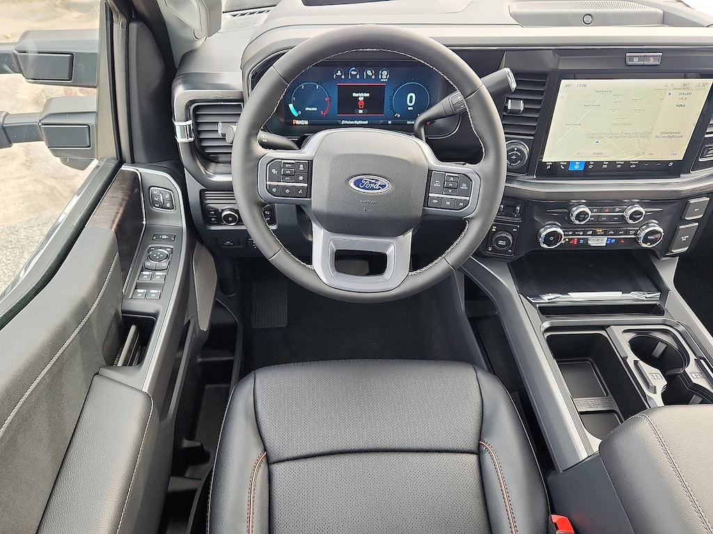Check out all these great options on this vehicle: 5th Wheel/Gooseneck Hitch Prep Package, Chrome Package (Chrome Door Handles, Chrome Exhaust Tip, Unique Chrome Mirror Caps, and Wheels: 20" Chrome PVD Aluminum), Ford Connectivity Package (1-Year Included), FX4 Off-Road Package (Hill Descent Control, Off-Road Specifically Tuned Shock Absorbers, and Unique FX4 Off-Road Box Decal), Internet access capable: 5G Modem - Ford Connectivity Package, Lariat Premium Package (Lane Departure Warning System, Power-Sliding Rear-Window w/Defrost, Pro Trailer Backup Assist, and Pro Trailer Hitch Assist), Lariat Ultimate Package (4-Way Adjustable Headrests, Head-Up Display, Power-Deployable Running Boards, Radio: B&O Unleashed Sound System by Bang & Olufsen, SiriusXM w/360L, SYNC 4 w/Enhanced Voice Recognition, and Tailgate Step & Handle), Order Code 618A, Snow Plow Prep Package, 190 Amp Alternator, 4-Wheel Disc Brakes, 6" Angular Bright Anodized Step Bars, 8 Speakers, ABS brakes, Adaptive Cruise Control w/Stop-and-Go, Adjustable pedals, Air Conditioning, All-Weather Floor Mats, Alloy wheels, AM/FM radio: SiriusXM with 360L, Auto High-beam Headlights, Auto-dimming Rear-View mirror, Automatic High Beam, Automatic temperature control, BLIS w/Cross-Traffic Alert, Brake assist, Bumpers: chrome, Compass, Delay-off headlights, Driver door bin, Driver vanity mirror, Dual AGM 68 AH Battery, Dual front impact airbags, Dual front side impact airbags, Electronic Stability Control, Emergency communication system: SYNC 4 911 Assist, Engine Block Heater, Flow-Through Console, Front & Rear Parking Sensors, Front ActiveX Trimmed 40/Console/40 Seats, Front anti-roll bar, Front Bucket Seats, Front Center Armrest, Front dual zone A/C, Front fog lights, Front License Plate Bracket, Front reading lights, Fully automatic headlights, Garage door transmitter, Heated door mirrors, Heated front seats, Heated rear seats, Heated steering wheel, Illuminated entry, Lane-Keeping System, LED Roof Clearance Lights, Low tire pressure warning, Memory seat, Navigation system: Connected Navigation, Outside temperature display, Overhead airbag, Overhead console, Panic alarm, Passenger door bin, Passenger vanity mirror, Pedal memory, Post-Collision Braking, Power door mirrors, Power driver seat, Power passenger seat, Power steering, Power windows, Pre-Collision Assist, Privacy Glass, Pro Power Onboard - 2kW, Radio: B&O Sound System by Bang & Olufsen, Rain sensing wipers, Rear Parking Sensors, Rear reading lights, Rear seat center armrest, Rear step bumper, Rear window defroster, Remote keyless entry, SecuriCode Keyless Entry Keypad (Driver's Side), Security system, Speed control, Split folding rear seat, Steering wheel mounted audio controls, Tachometer, Telescoping steering wheel, Tilt steering wheel, Tough Bed Spray-In Bedliner, Traction control, Trip computer, Turn signal indicator mirrors, Twin Panel Power Moonroof, Upfitter Switches (6), Variably intermittent wipers, Ventilated front seats, and Wheels: 18" Bright Machined & Carbonized Gray Alum.